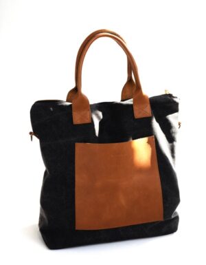 • Shopper with Leather Handles and Pocket Black