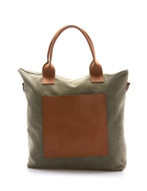 • Canvas Bag with Leather Details Dusty Green